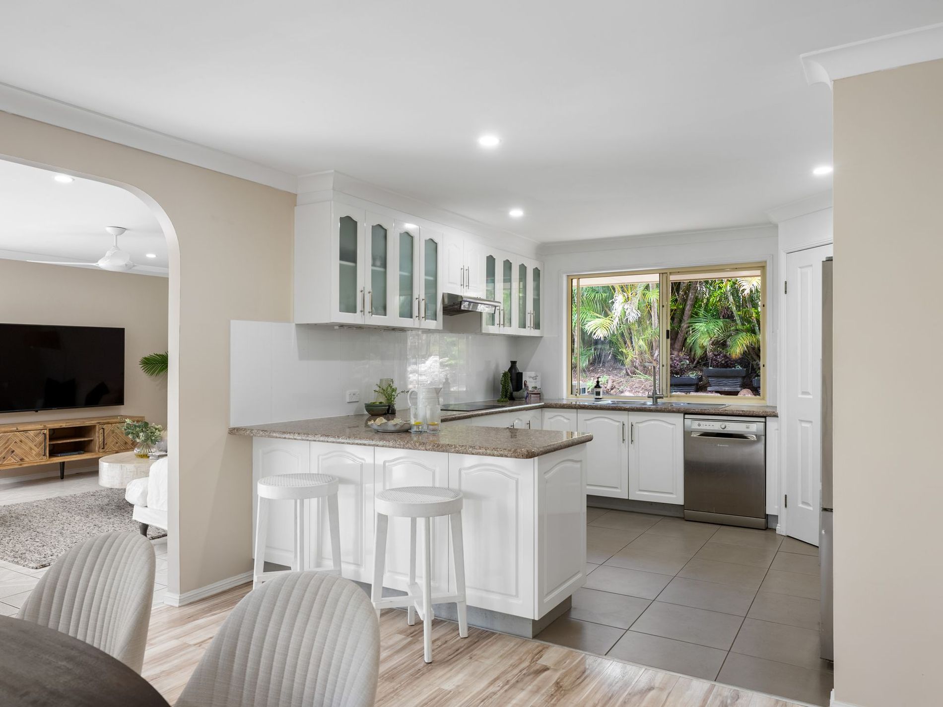 The layout is spacious and functional, offering multiple living zones that create both connection and separation all on one easy, low maintenance level. The main living and dining areas are open and welcoming, flowing effortlessly to the covered alfresco and pool beyond. Whether hosting weekend gatherings, enjoying long summer afternoons outdoors or simply unwinding at the end of the day, the home adapts with ease.