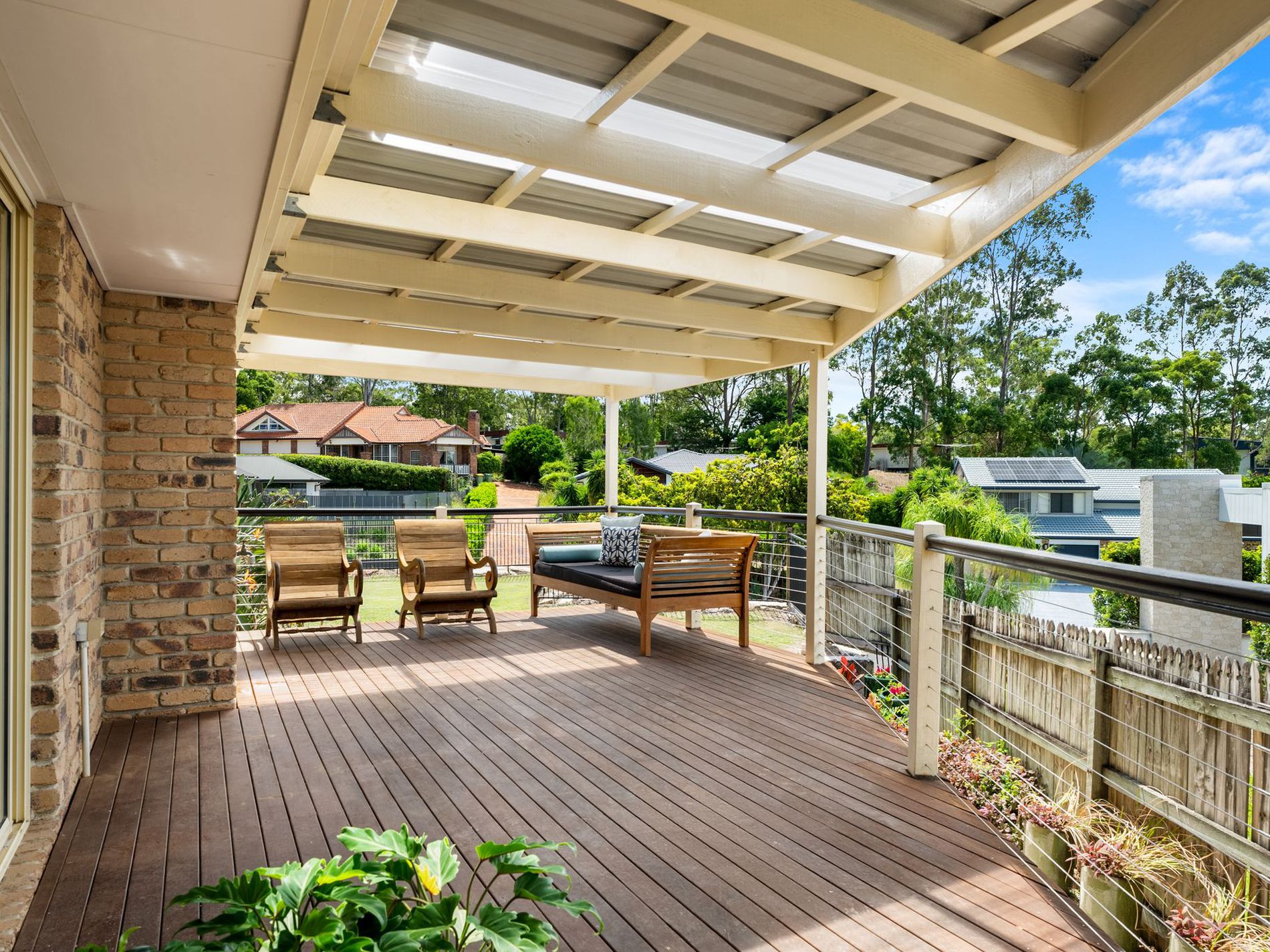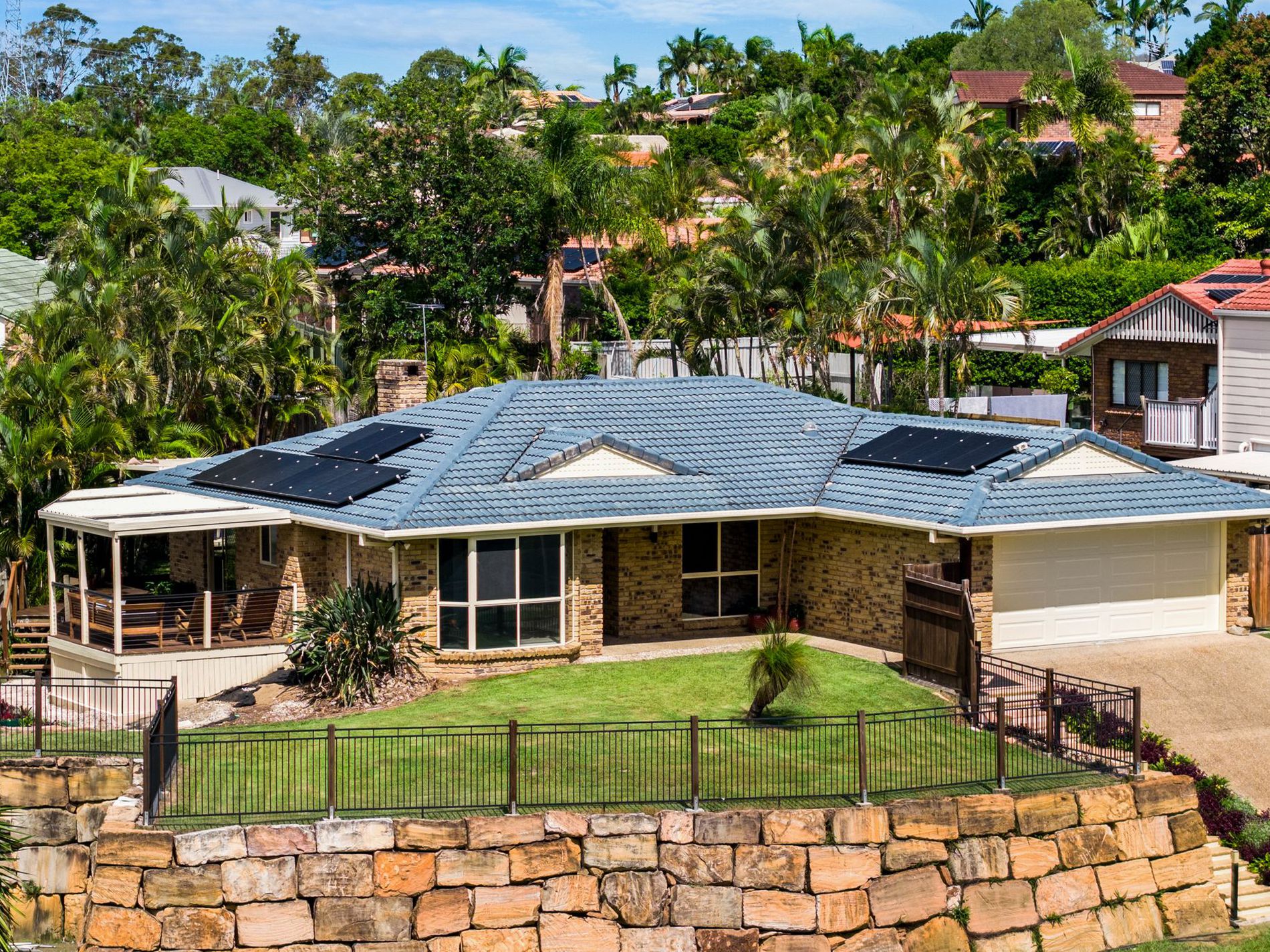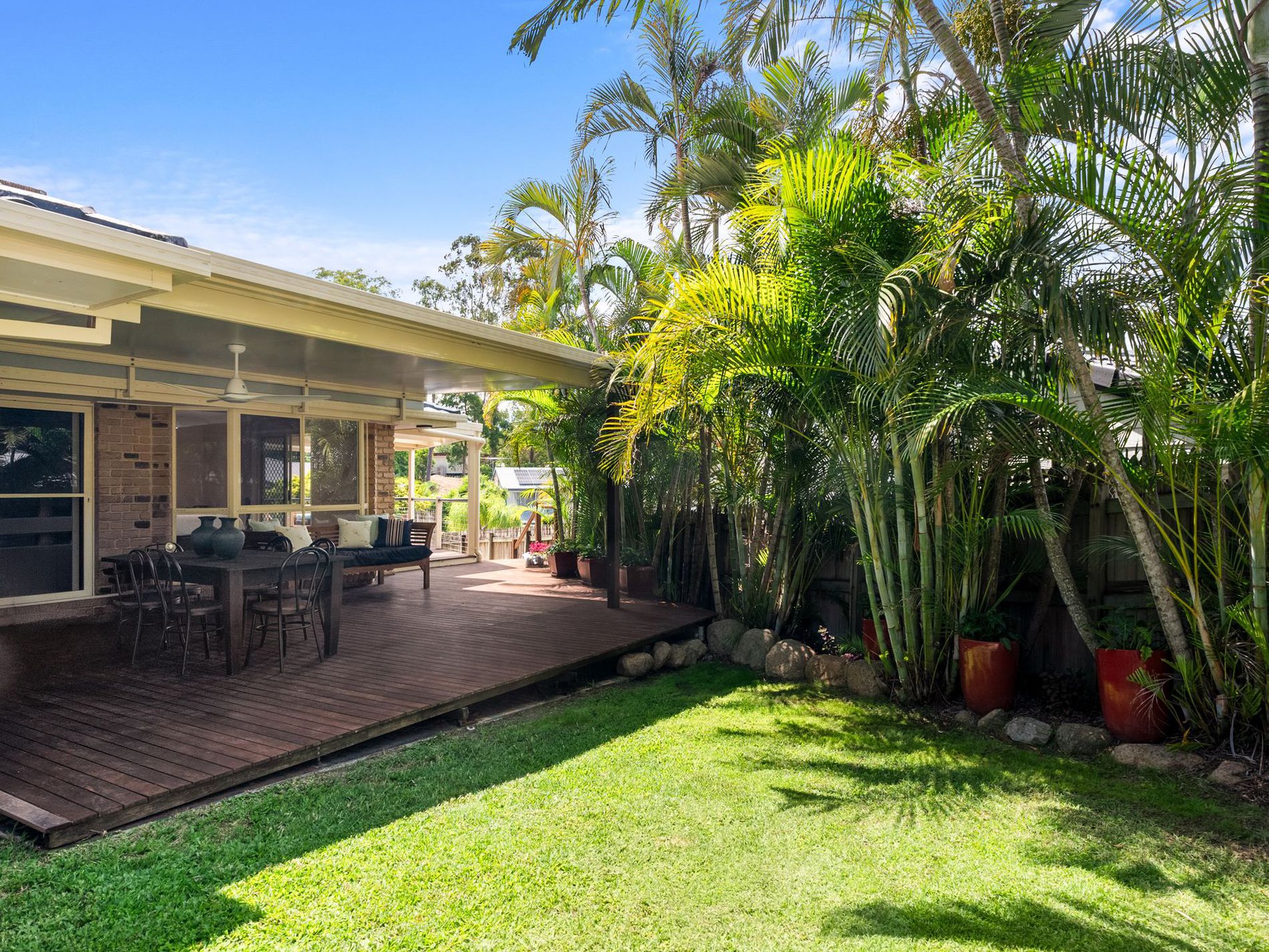 The outdoor setting is a true highlight. A sparkling in-ground swimming pool is framed by a private, fully fenced yard, creating a safe and inviting space for children and pets. The covered entertaining area provides year-round usability, making this home perfectly suited to Queensland living and family celebrations.